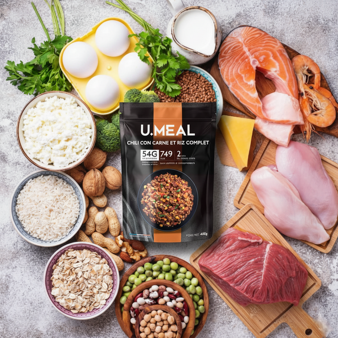 Chez U.Meal, notre mission est de fournir des repas riches en protéines pour soutenir vos objectifs de santé et de performance. Chaque repas que nous proposons contient un minimum de 45 grammes de protéines de haute qualité, garantissant une nutrition optimale pour aider à la récupération et à la croissance musculaire.